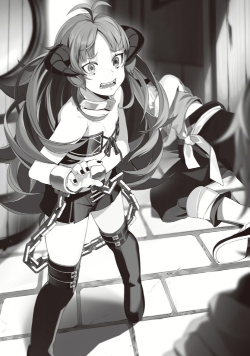Es una Súcubo... pero así de pequeña... sin duda debe de ser más joven que yo. ¿Podría ser algún tipo de recompensa por parte de Hitogami por hacer lo que me pidió? Si fuera así, es un tipo bastante majo. Aunque no, si mal lo recuerdo, no debería ser una súcubo... porque en este mundo las consideran monstruos, y residen principalmente en el continente Begarito.