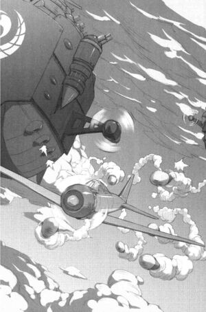 El mensaje codificado obviamente había sido roto. El enemigo yacía a la espera de la santa cruz. A su alrededor, aeronaves que llevaban el emblema del Amatsukami descendieron, atravesando la nube. Los gigantescos aviones con forma de insecto de patata reflejaban la luz del sol y rebotaban en sus cuerpos de color gris claro.